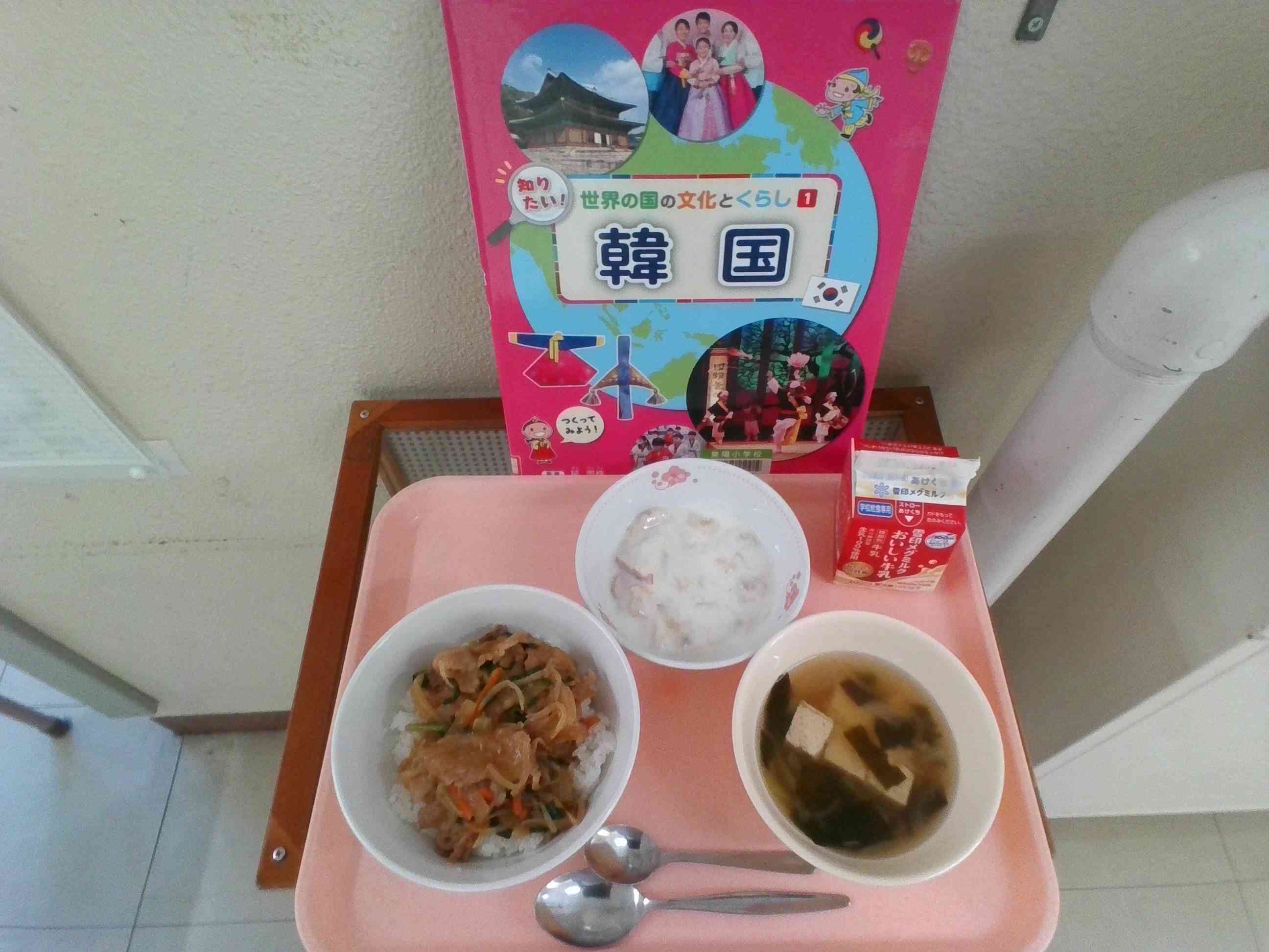 *世界の料理:韓国* ✿ プルコギ丼 ✿ 牛乳 ✿ わかめスープ ✿ フルーツヨーグルト