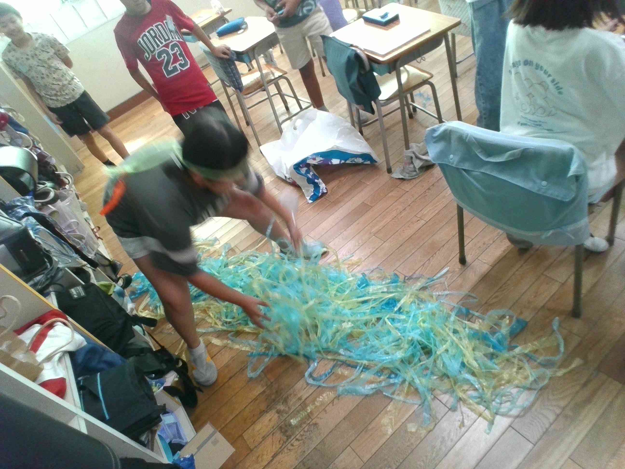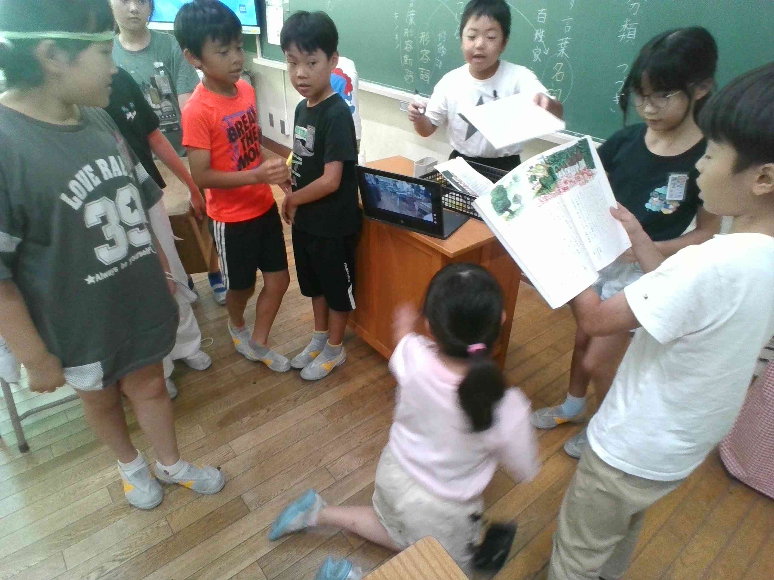 「ごんぎつね」の劇に向けて、自主的な準備が続いています。 本番は、木曜日です。 写真は、 1.劇の練習をする演者 2.川を準備する裏方とその川で演技をする演者 3・4.背景を準備する裏方 の様子です。 それぞれが自分の役割をしっかり担っているところに成長を感じます。