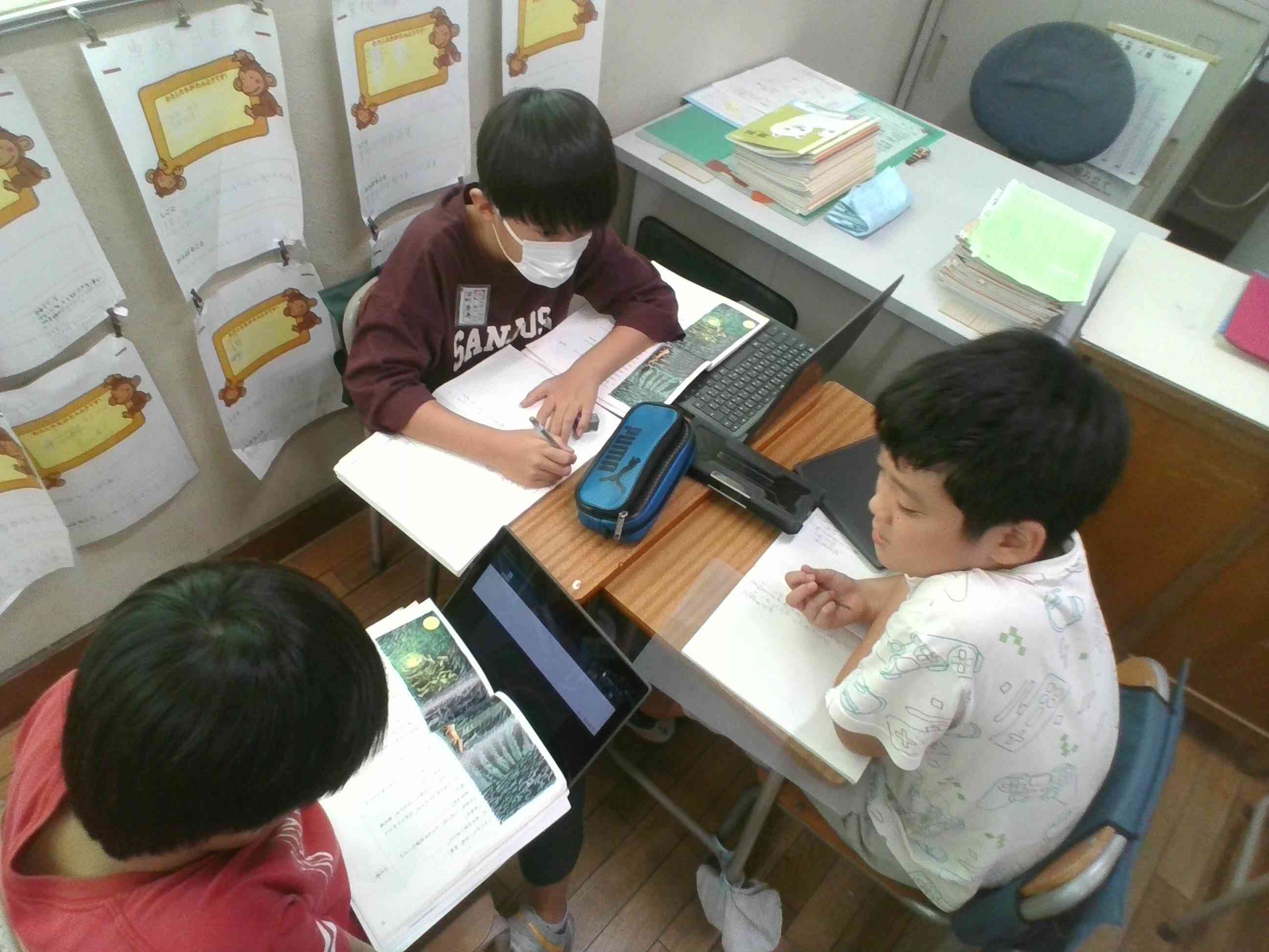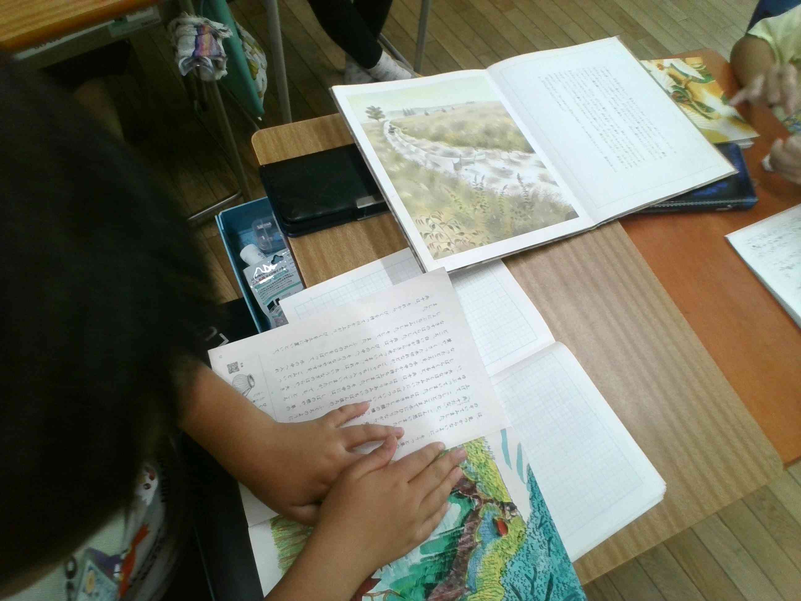 2組の「ごんぎつね」の学習は、場面ごとにごんや兵十の気持ちの変化を読み取りながら お話の中で疑問に思ったことをみんなで解き明かしていきました。 今日は一通りの読みが終わったので、 自分の興味を深める時間をとりました。 ・新しい疑問を友だちと話し合う人 ・お話の中の言葉を調べる人 ・新美南吉の他の話を読む人 ・「ごんぎつね」の別の絵柄の本を読む人 ・きつねが主人公の他の話を読む人 など、様々な活動が見られました。 興味があることを見つけたり、興味があることを深めたりする力がついてきている4年生です。【添付ファイル】