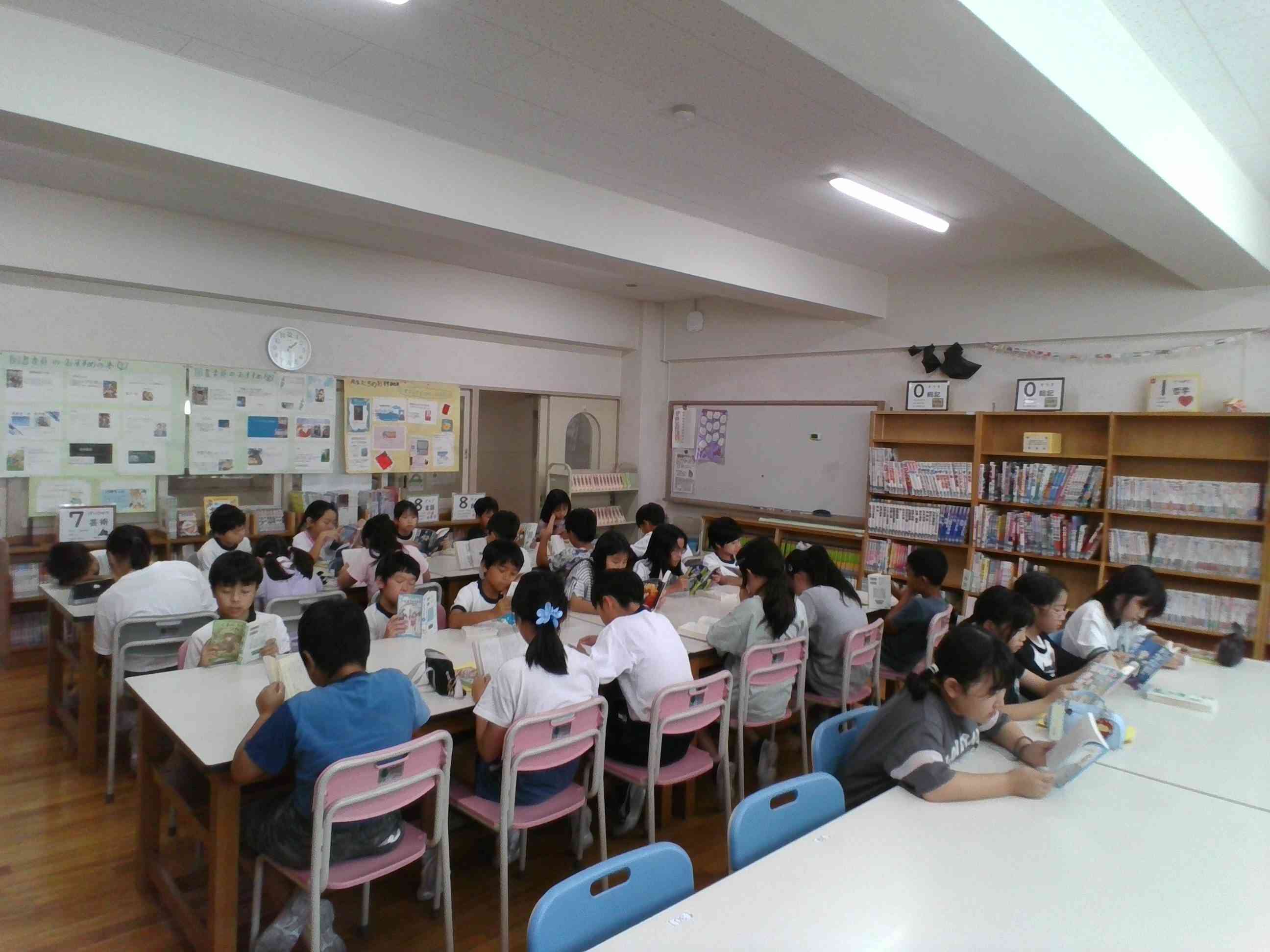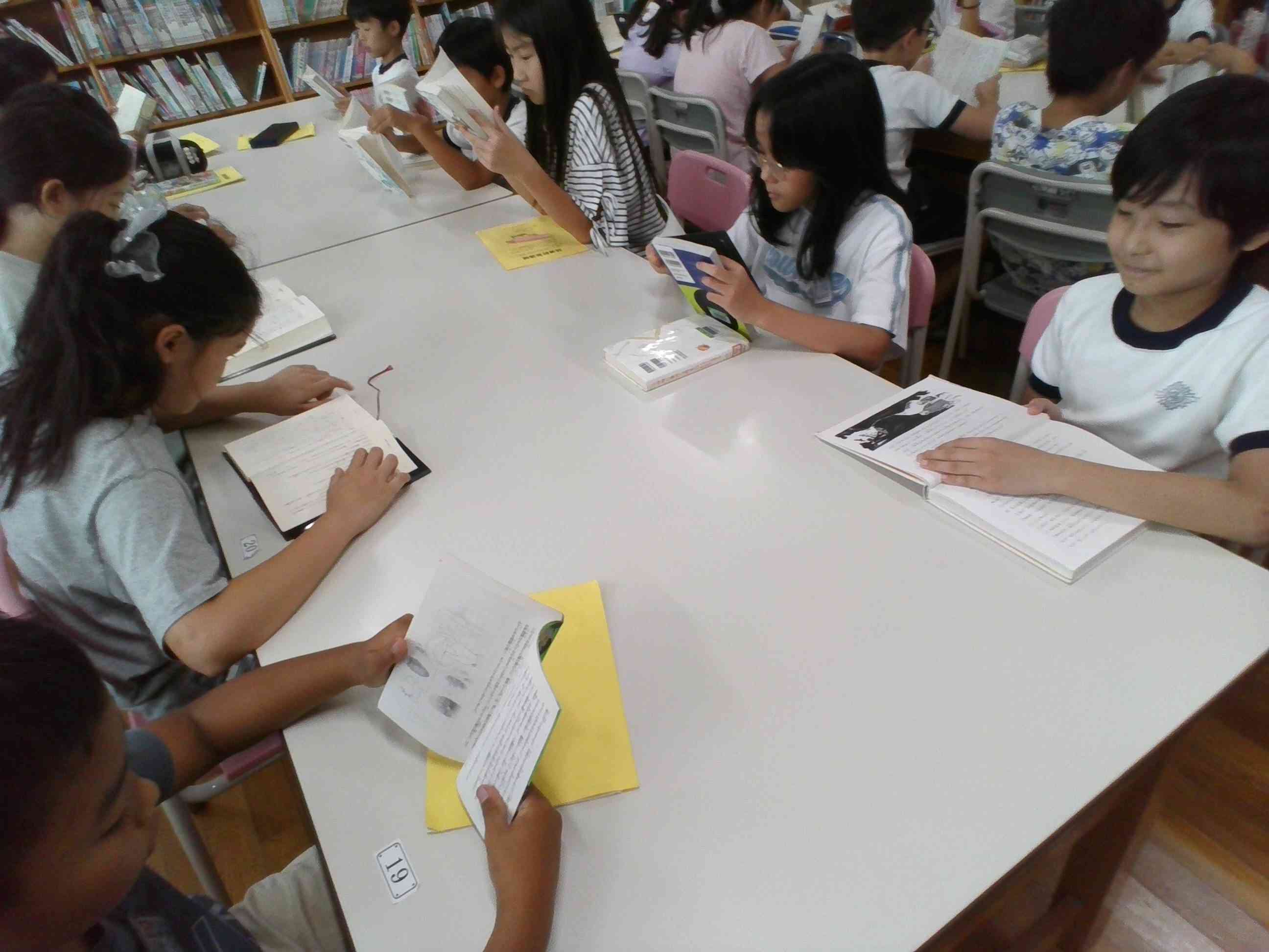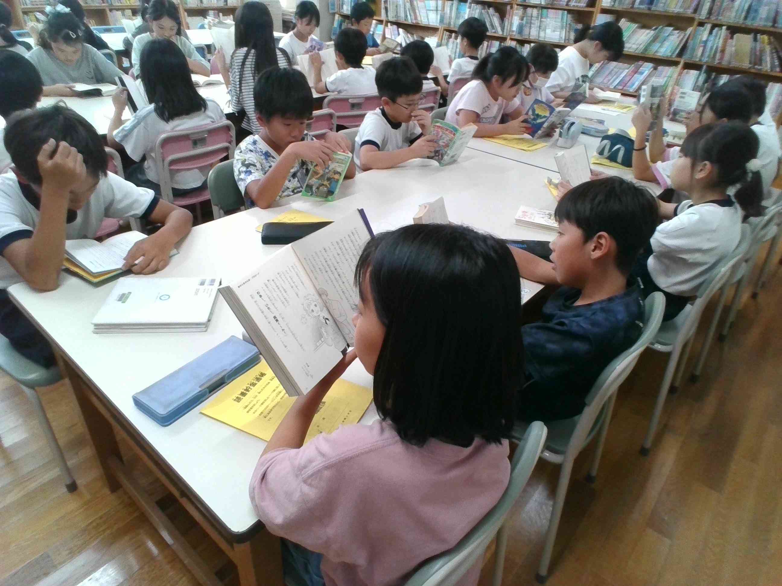 図書の時間は、ただ好きな本を選んで読むだけでなく、 ・様々な本や文章に触れること。 ・読解力をつけること。 ・集中力を伸ばすこと。 を目的に、「15分間小説タイム」に取り組みます。 今日は4年3組でその1回目。 その本を借りるか、借りないかは別として、15分と時間を区切って小説を読みました。 普段は絵本や図鑑、歴史漫画などを好む子も今日は小説から1冊選びます。 とても静かで穏やかなよい時間になりました。 「15分間小説タイム」のあとには、 「15分は意外と短かった。」、「30分くらいに感じた…」 など様々な感想が聞かれました。 また、そのまま小説を借りていく子も多くいました。 今後、他のクラスでも定期的に取り組んでいきます。【添付ファイル】