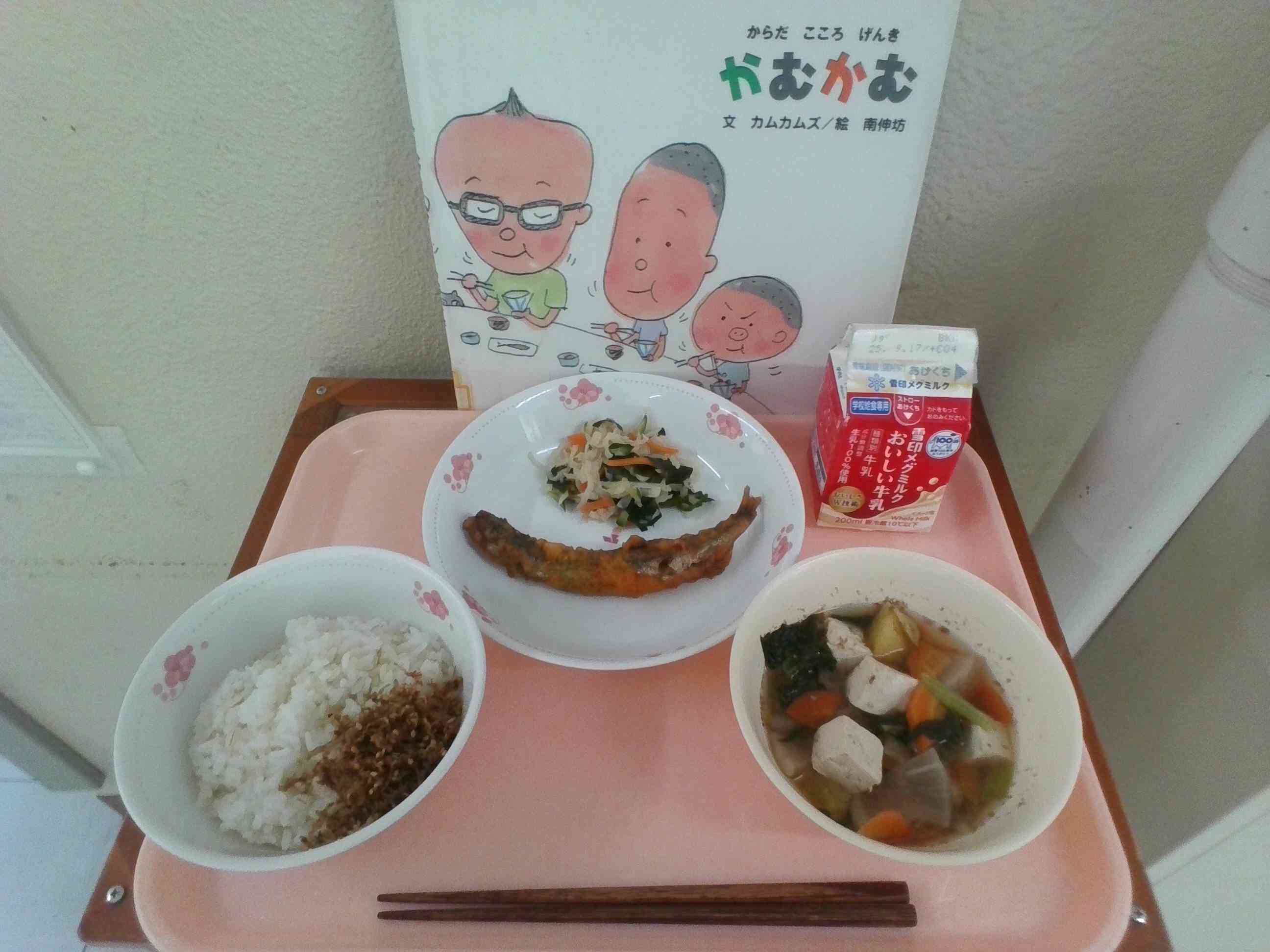 *いい歯の日給食* ✿ 麦ごはん・かみかみふりかけ ✿ 牛乳 ✿ ししゃものもみじ揚げ ✿ 海藻入りハリハリサラダ ✿ 根菜と豆腐のみそ汁